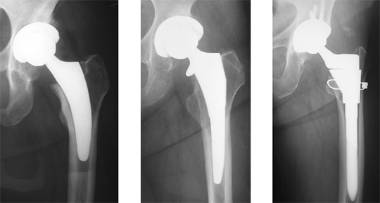 ・人工股関節の場合、長期使用で摩耗、緩み、骨融解が生じる可能性があります。その場合でも、痛みなどの症状が出にくいため、定期的な受診が必要となります。 ・摩耗、緩み、骨融解が軽度の場合は、患者様にとって侵襲の少ない人工 股関節再置換術で済みますが、重度の場合は、侵襲の非常に大きな人工股関節再置換術となることもあります。 |